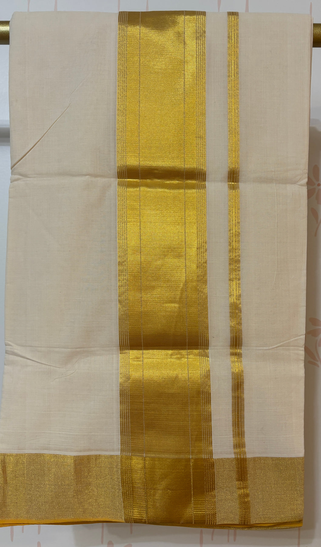 Experience timeless elegance with the Balaramapuram Premium Handloom Kasavu Saree. Featuring a classic 3-inch golden kasavu border complemented by a delicate orange thin border and orange selvage, this saree radiates festive charm and royal sophistication. Crafted meticulously by skilled artisans, it offers a rich, traditional look perfect for special occasions. Included with running blouse material, it allows for a customized fit to complete your graceful ensemble. Elevate your wardrobe with this exquisite handloom treasure.