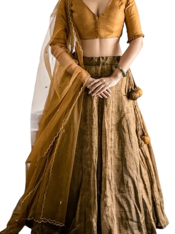 Gold Linen tissue Lehanga set